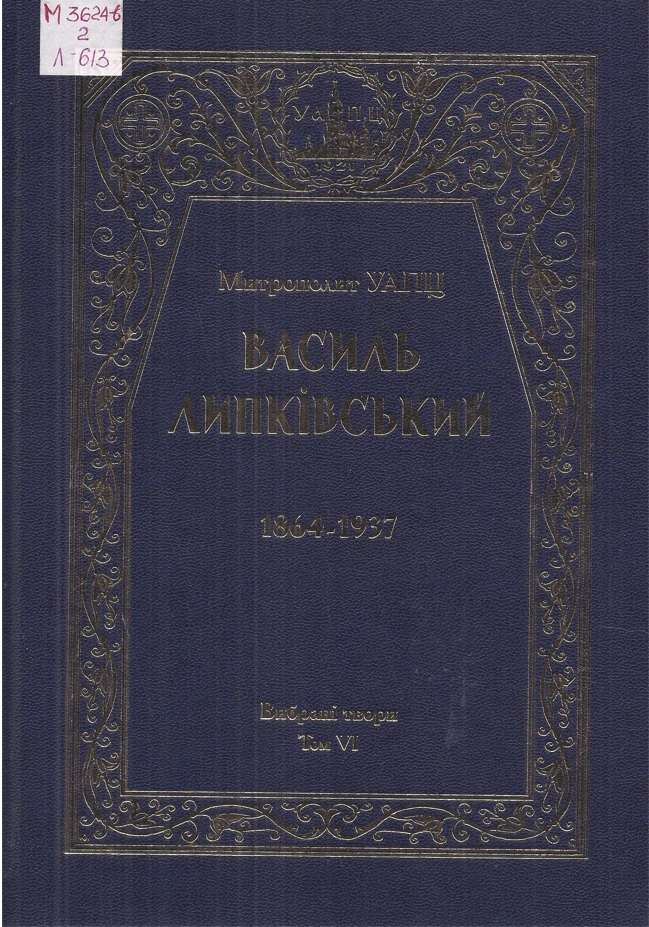 Липківський В. (митрополит УАПЦ ; 1864 – 1937). Вибрані твори . Т. 6 / В. Липківський ; упоряд. І. М. Преловська ; НАН України. Ін-т укр. археографії та джерелознавства ім. М. С. Грушевського. – Київ : Українські пропілеї, 2018. – 466 с.