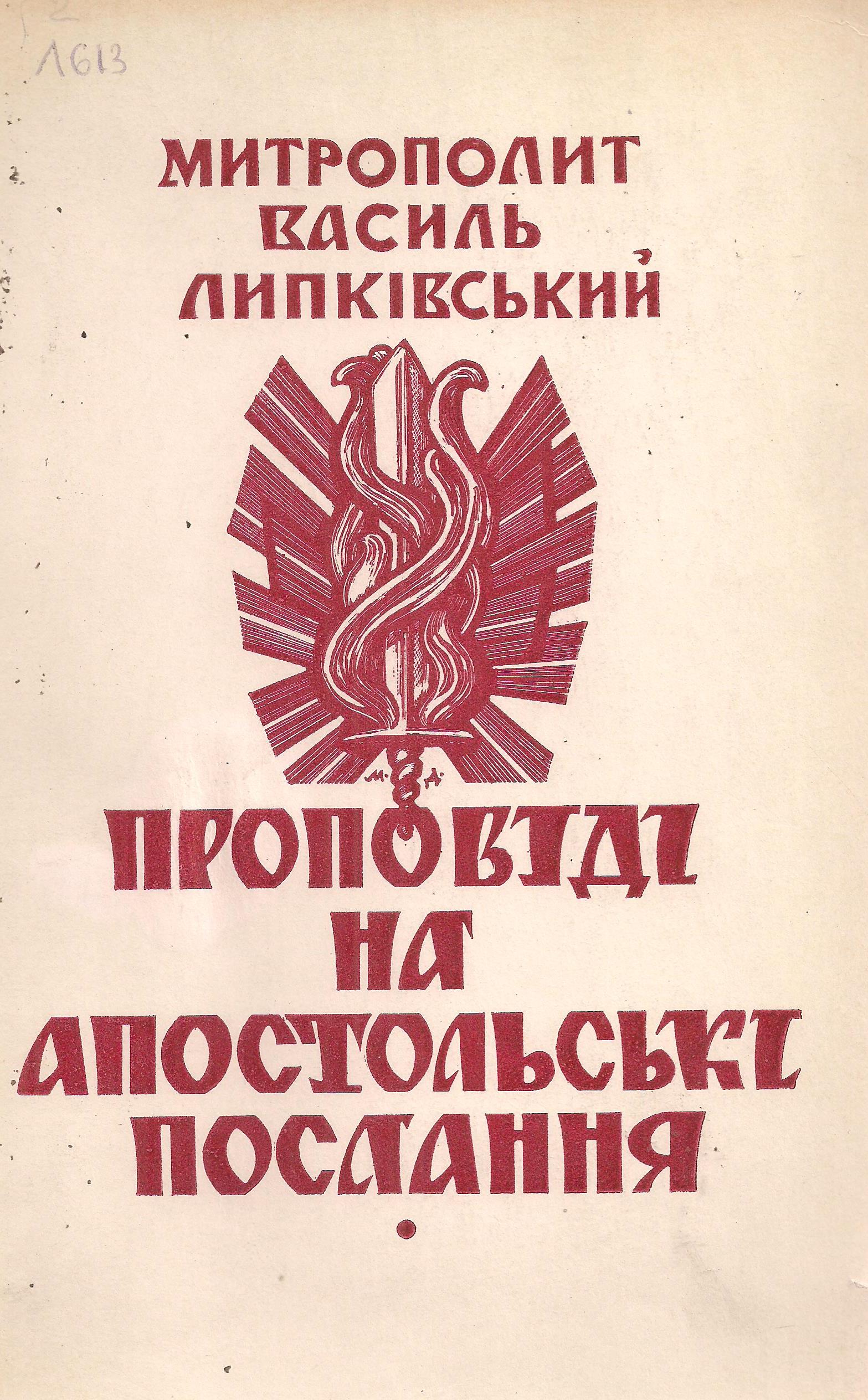 Липківський В. (митр.) Проповіді на Апостольскі Послання / В. Липківський. – Чікаго : Православ. Українець, 1966. – 209 с., 1 арк. портр.