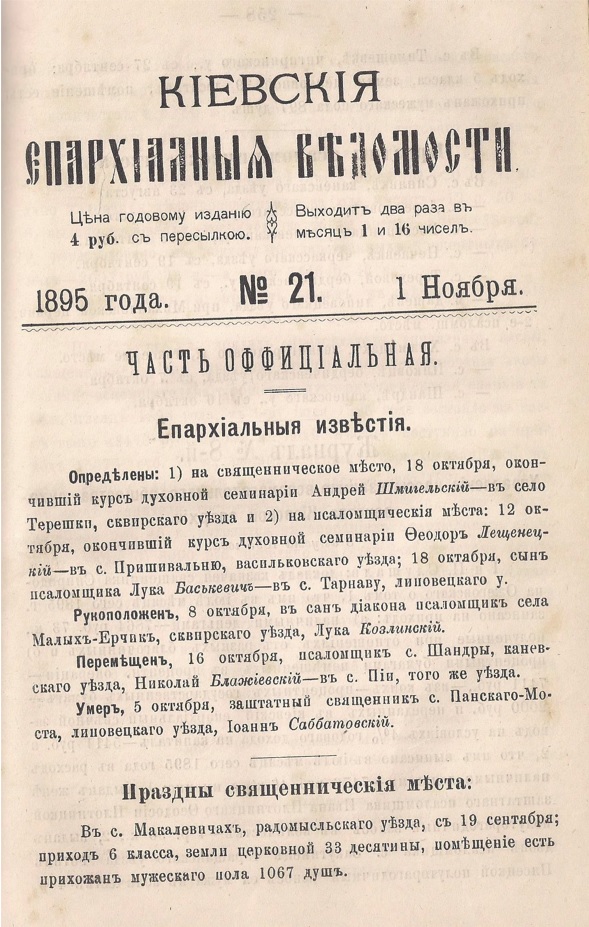 Липковский В. Киевский епархиальный банк / В. Липковский // Киевские епархиальные ведомости. – 1913. – № 28. – С.762 - 765.