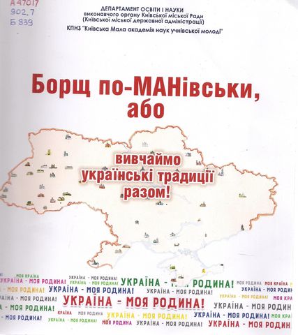 Борщ по-МАНівськи, або вивчаймо українські традиції разом : каталог учасників Всеукраїнського конкурсу учнівської молоді “Український борщ – національний бренд кулінарної культури” / Київська міськдержадмін. Київська міськрада. Департамент освіти і науки, Київська Мала академія наук учнівської молоді ; авт. ідеї Є. В. Моїсеєнко ; відп. за вип. І. Поліщук ; ред. Н. Земляк ; технічн. ред. Г. Мірошниченко. - Київ : Київська Мала академія наук, 2021. - 126 с. : портр., фот.