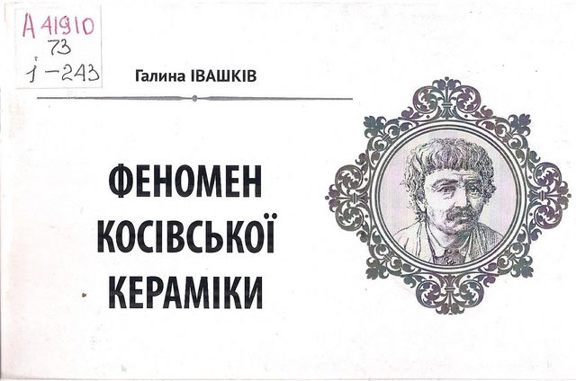 Івашків Г. Феномен косівської кераміки / Г. Івашків. - Київ : Пам’ятки України, 2019. - 31 с. - (Народна бібліотека “Пам’ятки України” ; вип. 6) (Бібліотека журналу “Пам’ятки України” ; кн. 73).