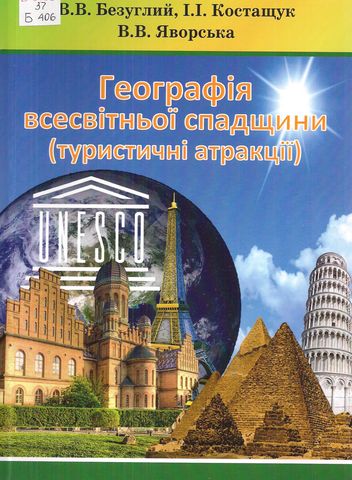 Безуглий В.В. Географія всесвітньої спадщини (туристичні атракції): навчальний посібник / В. В. Безуглий, І. І. Костащук, В. В. Яворська ; Дніпровський нац. ун-т ім. О. Гончара, Чернівецький нац. ун-т ім. Юрія Федьковича, Одеський нац. ун-т ім. І. І. Мечникова. - Дніпро : Ліра, 2021. - 527 с. : іл., табл.