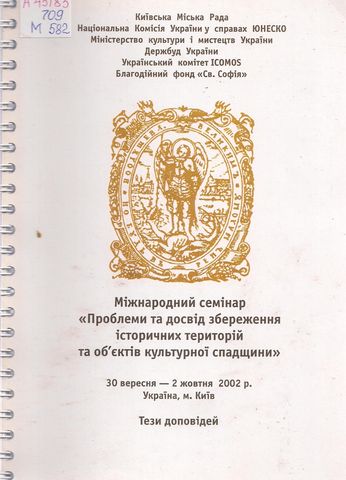 Проблеми та досвід збереження історичних територій та об’єктів культурної спадщини : тези доповіді / Київська міськрада, Нац. комісія України у справах ЮНЕСКО, М-во культури і мистецтв України ; ред. кол. Л. В Прибєга. - Київ : Вид-во Артек, 2002. – 142 с.