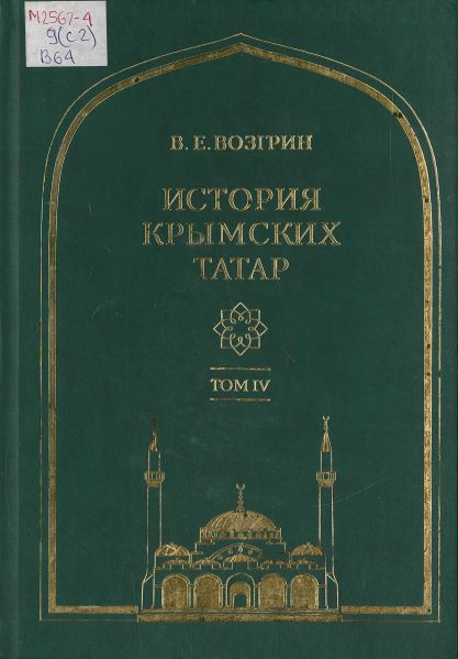 8. Возгрин В. Е. История крымских татар : очерки этнической истории коренного населения Крыма в 4 т. Т. 4 / В. Е. Возгрин. – Симферополь : Крымучпедгиз, 2013. – 620 с. : ил., фот. – Текст рос. Шифр: М2567-4/9(с2)/В64.