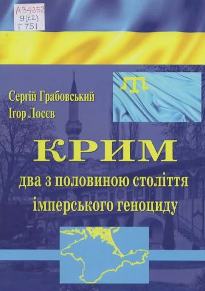 9. Грабовський С. І. Крим: два з половиною століття імперського геноциду / С. І. Грабовський, І. В. Лосєв. – Київ : Знання України, 2016. – 47 с. Шифр: А34952/9(с2)/Г751.