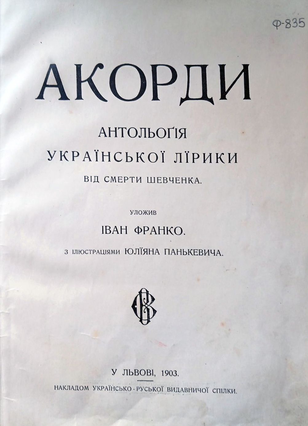 Думкы-мережанкы Олены Пчилкы. Волынь, 1885 р. Киев: Тип. Г. Т. Корчак-Новицкого, 1886. 97, ІІ с.
