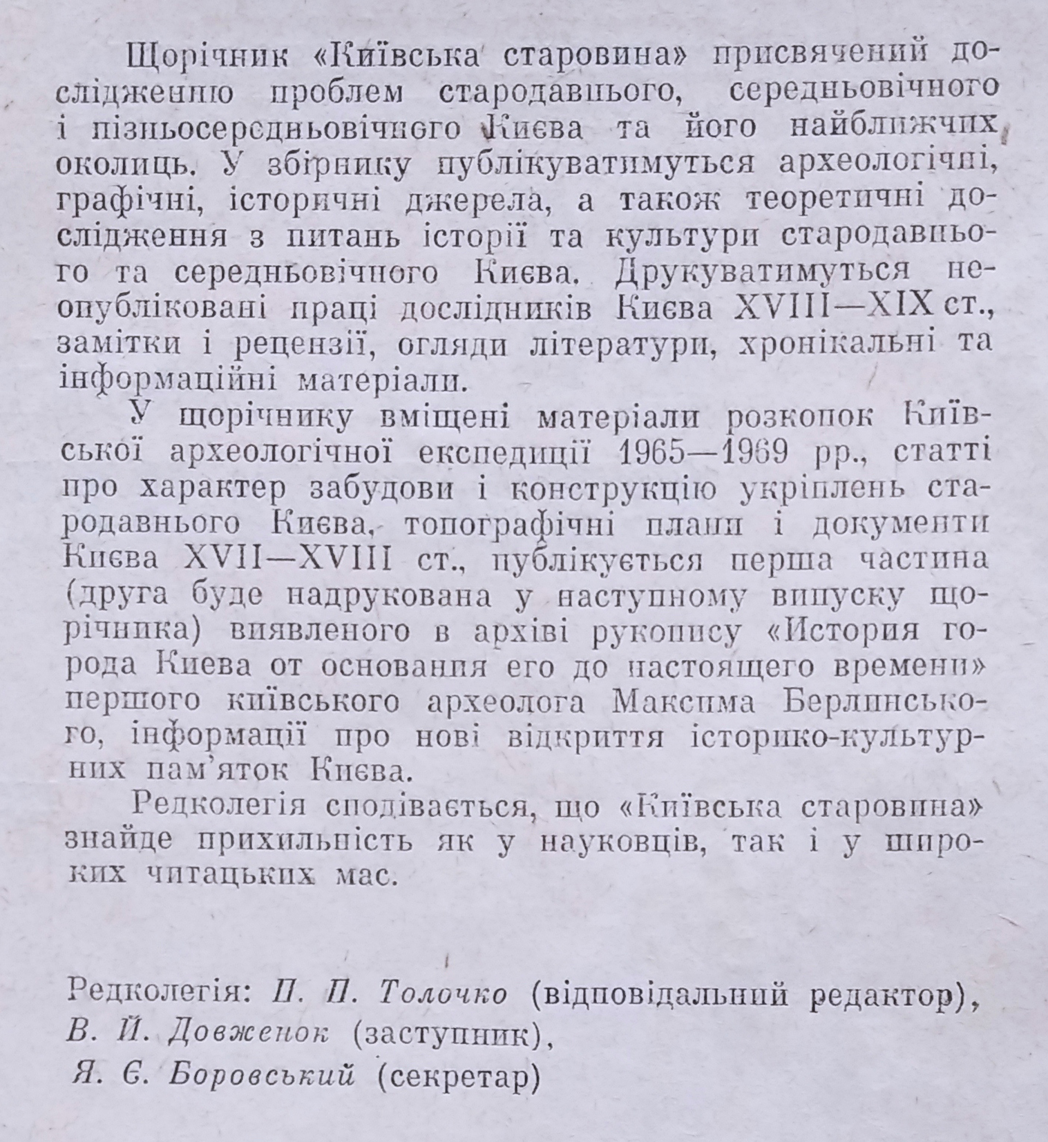 Слід зазначити, що «Краткое описание Киева» – це адаптований виклад іншої великої праці вченого «История города Киева от основания его до настоящего времени», яка так і не побачила світ за життя автора. Подана до Цензурного комітету, ця книга «загубилася» майже на 170 років. Вважалося, що її назавжди втрачено для науки [11, с. 43].