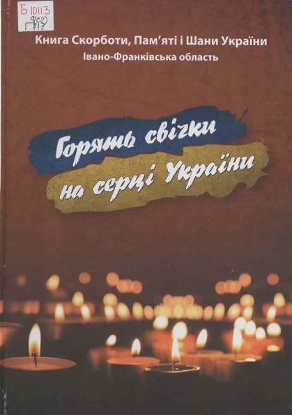 Горять свічки на серці України / Пошуково-видавниче агентство «Книга пам’яті України». Івано-Франківський обл. від. ; ред. кол. І. М. Пасічняк [та ін.]. – Вид. 2-е, допов. – Івано-Франківськ : Місто НВ, 2018. – 315 с. : іл. – (Книга Скорботи, Пам’яті і Шани України. Івано-Франківська область). Шифр: Б10113/9(с2)/Г717