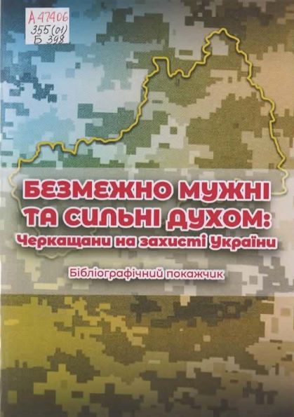 Безмежно мужні та сильні духом: черкащани на захисті України : бібліогр. покажч. / Черкаська облдержадмін., Упр. культури та охорони культурної спадщини, Черкаська облрада, Обл. універс. наук. б-ка ім. Тараса Шевченка ; уклад. Н. В. Адешелідзе ; ред. О. І. Дяглюк. – Черкаси, 2023. – 54 с. Шифр: А47406/355(01)/Б398