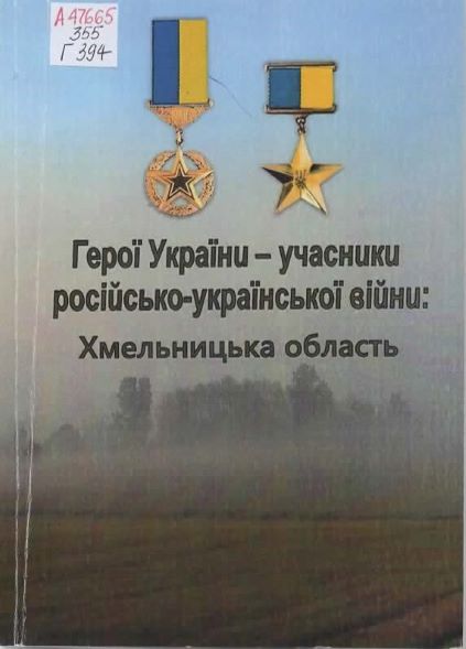 Герої України – учасники російсько-української війни: Хмельницька область : біобіліогр. покажч. / Хмельницька облдержадмін., Департамент інформ. діяльності, культури, національностей та релігій, Хмельницька обл. універс. наук. б-ка ; уклад. О. М. Шеін. – Хмельницький : Стрихар А. М., 2024. – 65 с. – (Видатні особистості Хмельниччини). Шифр: А47665/355/Г394
