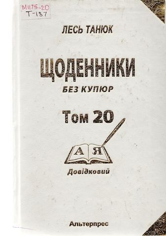 Танюк Л. С. Твори: в 60 т.. Т. 20: Щоденники без купюр: (довідковий) / Л. С. Танюк. – Київ: Альтерпрес, 2012. – 584 с.