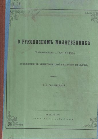 Головацкий Я Ф. О рукописном молитвеннике старочешском с XIV–XV века, хранящемся в университетской библиотеке во Львове / Я. Ф. Головацкий. – Прага : Тип. Е. Ерябковой, 1861. – 24 с.- [Tекст рос.]