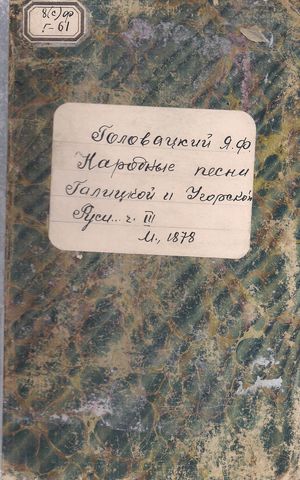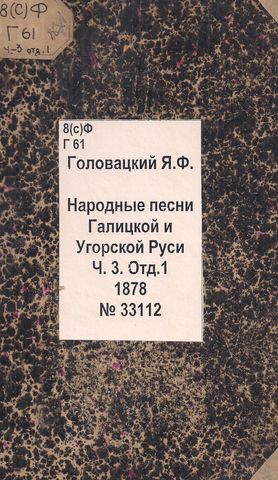 Головацкий Я.Ф. Народные песни Галицкой и Угорской Руси . Ч. 3. Отд. 2 / Я. Ф. Головацкий. – Москва : Университетская тип., 1878. – 572, LXXX с. : ил. – [Tекст рос.]