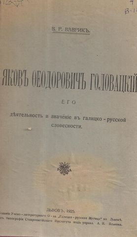 Ваврик В.Р. Яков Федорович Головацкий: его деятельность и значение в галицко-русской словесности / В. Р. Ваврик. – Львов : О-во Галицко-русск. Матица, 1925. – 170 с. - [Текст рос.]