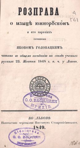 Головацкий Я. Розправа о языце южно-русском и его наречиях / Я. Головацкий. – Львов, 1949. – 56 с. – [Tекст рос.]