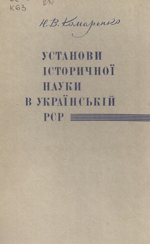 Комаренко Н.В. Установи історичної науки в Українській РСР (1917 - 1937 рр.) / Н.В. Комаренко. – Київ: Наукова думка,1973. – 169 с.