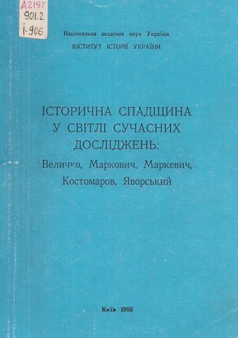 Історична спадщина у світлі сучасних досліджень: Величко, Маркович, Маркевич, Костомаров, Яворський / НАН України. Ін-т історії України ; ред.: В. А. Смолій, Ю. А. Пінчук. – Київ, 1995. - 189 с.