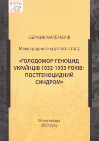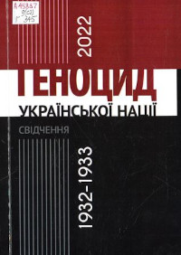 - Геноцид української нації 1932–1933/2022: свідчення / Нац. акад. правових наук України, Міжнар. асоц. дослідників Голодомору-геноциду, Нац. асоц. дослідників голодомору-геноциду українців, Фундація Укр. Голодомору-геноциду (США) ; упоряд. О. О. Стасюк. – Київ : Домбровська Я. М., 2022. – 275 с. : фот. Шифр:А45887/9(с2)/Г345