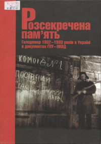 - Розсекречена пам’ять: Голодомор 1932-1933 років в Україні в документах ГПУ-НКВД / Служба Безпеки України, Міжнар. благодій. фонд “Україна 3000” ; упоряд. В. К. Борисенко. – Київ : Вид. дім "Києво-Могилян. акад.", 2008. – 603 с. Шифр:Б5079/9(с2)/Р654