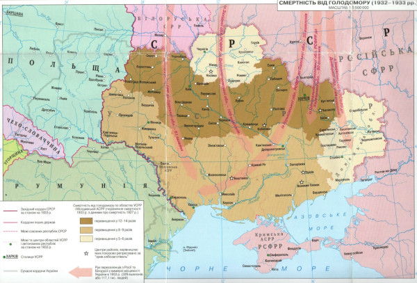 - територіальні масштаби смертності від Голодомору 1932–1933 рр. по областях УСРР;