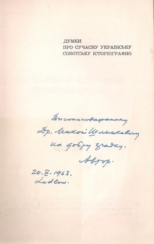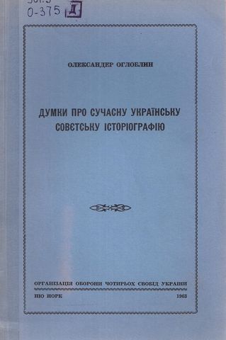 Оглоблин О. Думки про Хмельниччину / О. Оглоблин . – Нью-Йорк : Орг. Оборони Чотирьох Свобід України, 1957. – 87 с. : іл.