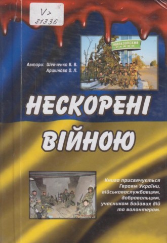 Нескорені війною : книга присвячується Героям України, військовослужбовцям, учасникам бойових дій, добровольцям та волонтерам / Валентина Шевченко, Олена Аршинова. – Ізмаїл : Ізмаїльська міська друкарня, 2020. – 192 с. За всі роки незалежності Україна, на щастя, не знала війни. Наш народ пишається тим, що у складні роки владося зберегти мир. Але, як бачимо, війна не обійшла нашу державу. Захищати цілісність своєї території пішли сини – добровольці уже в перші дні, і зараз продовжують обороняти свою незалежну Україну. Це історико-хронікальне видання написано на реальних подіях та присвячено Героям України, військовослужбовцям, учасникам бойових дій, добровольцям, а також волонтерам. Книга містить велику кількість фото, які ілюструють події в Україні, що беруть свій початок із 2014 року.