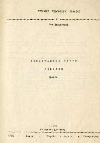 Биковський Лев. Департамент книги України: проект / Л. Биковський. – Київ : Держвидав України, 1942. – 26 с.