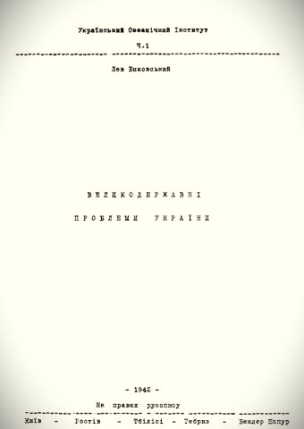 Биковський Лев. Великодержавні проблеми України / Л. Биковський ; Український Океанічний Інститут (Ч. 1). – Київ, 1942. – 24 с.: іл. (відбитка з «Чорноморського збірника», книга 1 ; Видання Українського Чорноморського інституту, Ч. 10.)