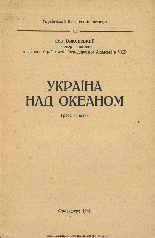 Биковський Лев. Україна над океаном / Л. Биковський. - Франкфурт, 1946. – 23 с. – (Український океанічний інститут ; 11).