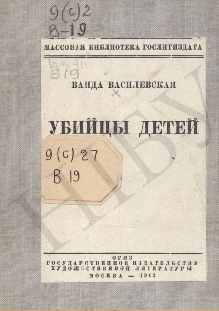 Василевская В. Убийцы детей / В. Василевская ; ред. А. Мясников. – Москва : Госполитиздат, 1942. – 30 с.