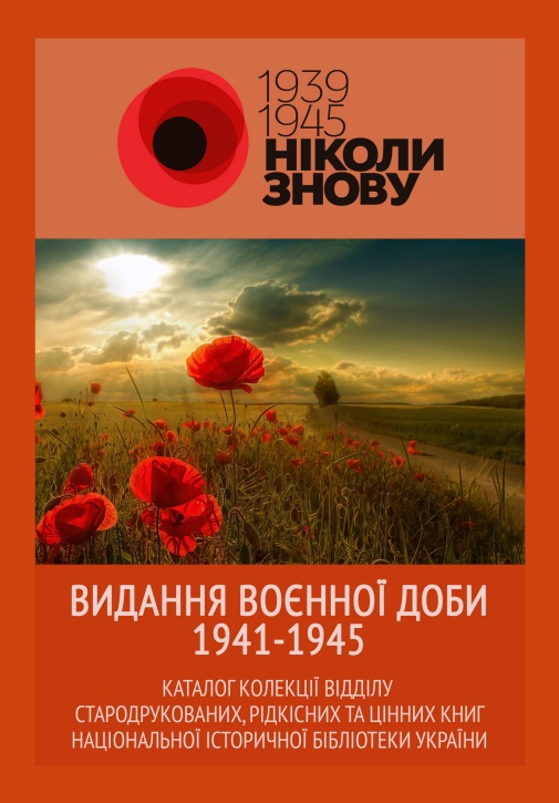 Видання воєнної доби 1941-1945 рр.: каталог колекції відділу стародрукованих, рідкісних та цінних книг НІБ України / упоряд.: О. Марченко, С. Лещенко ; ред.: С. Смілянець, Н. Хівренко ; Нац. іст. б-ка України. – Київ, 2015. – 78 с.