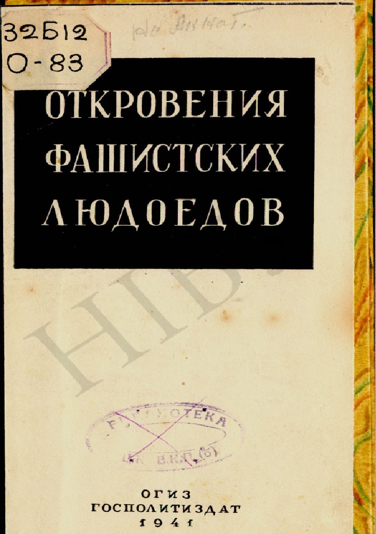 Откровения фашистских людоедов: [сборник для служебного пользования]. – Москва : ОГИЗ, 1941. – 72 с.