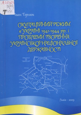 Терлюк І. Окупаційний режим в Україні 1941-1944 рр. і проблеми творення української національної державності : історія держави і права / І. Терлюк ; Львівський держ. ун-т внутрішніх справ. – Львів : Каменяр, 2009. – 126 с.