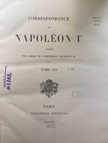 Napoléon I Bonaparte. Correspondance de Napoleon I-er publiee par ordre de L'Empereur Napoleon III [Текст] . T. 14 / Napoléon I Bonaparte. - Paris : [s. n.], 1863. - 780 p.