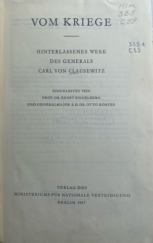Clausewitz, Carl (von). Vom Kriege. Hinterlassenes Werk [Текст] / C. Clausewitz. - Berlin : [s. n.], 1957. - 958 s.