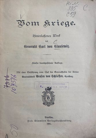Clausewitz, Carl (von). Vom Kriege. Hinterlassenes Werk [Текст]/ C. Clausewitz. - Berlin : F. Dummler, 1905. - XVI, 784 s.