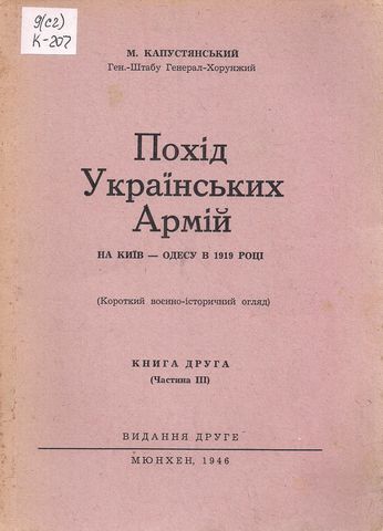 Капустянський, М. Похід українських армій на Київ – Одесу в 1919 році : (короткий воєнно-історичний огляд). Ч. 3 / М. Капустянський. – 2-ге вид. – Мюнхен, 1946. – 200 с.