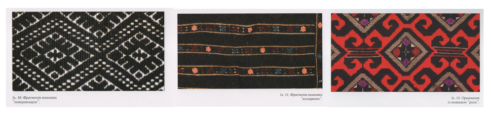 Винятковою прикметою давніх вишиванок є візерунки, створені з дивовижних геометричних знаків із закодованою інформацією про світосприйняття та культуру їхніх творців. Головна увага в оздоблені сорочки була зосереджена на вишивці рукавів. Суцільно вишиті площини схематично можна розділити на три орнаментальні поля – уставка (вуставка, плечко, полик), частина рукава під уставкою («морщінка», «підбиране», «підплечко», «підполики», «підрамник», «курпіння», «круплянка») та нижня частина рукава («стовп», «вішитка»). Це три самостійні орнаментальні блоки зі своєю внутрішньою композицією, асортиментом мотивів та колоритом. За композиційно-декоративним оформленням, стилем орнаменту, колоритом вишивки на рукаві можна було впізнати, з якої місцевості жінка, до якого роду чи громади вона належить. У деяких виробах рукав суцільно покривали вишивкою, що створювало ефект фактури іншої тканини. Чорний колір домінував переважно у північному регіоні у сорочках до 1930-х років минулого століття.