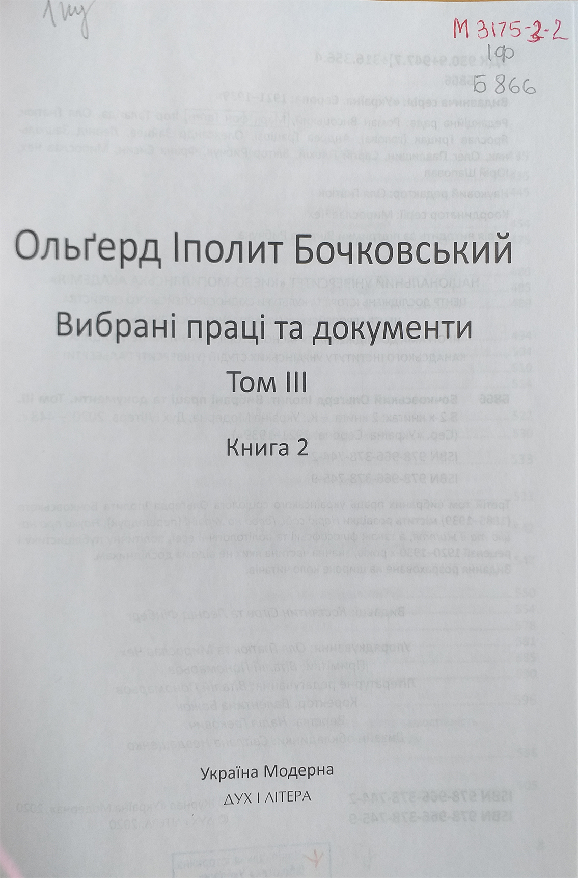 6. Бочковський, Ольґерд Іполит. Вибрані праці та документи: в 2 кн. Т. 3. Кн. 2 / О. І. Бочковський ; упоряд.: О. Гнатюк, М. Чех. – Київ : Україна Модерна : ДУХ І ЛІТЕРА, 2020. – 3-5, 435-874 с. – (Україна. Європа: 1921–1939).