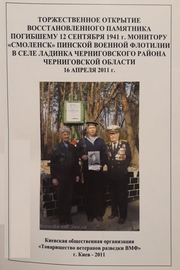 - Торжественное открытие восстановленного памятника погибшему 12 сентября 1941 г. монитору «Смоленск» Пинской военной флотилии в селе Ладинка Черниговского района Черниговской области, 16 апреля 2011 г. / сост. А. Мармашов, А. Чудновец. – Киев : Киевская общественная организация «Товарищество ветеранов разведки ВМФ», 2011. – 36 с.