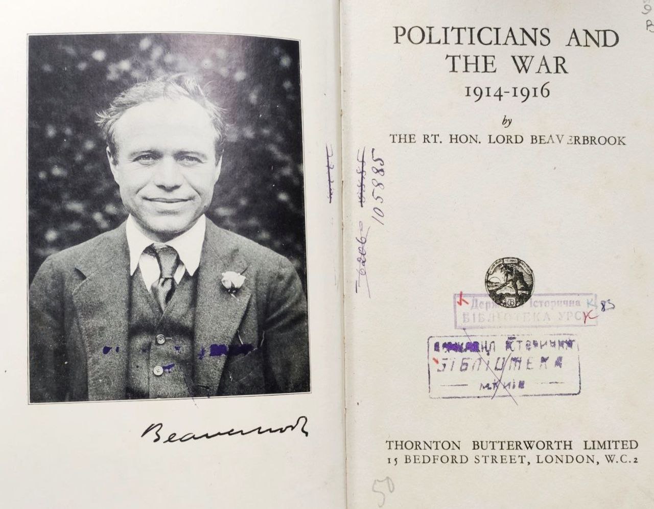 Beaverbrook. Politicians and the War 1914-1916 [Текст] / Beaverbrook. - London : Thornton Butterworth Limited, 1928. - 240 p.