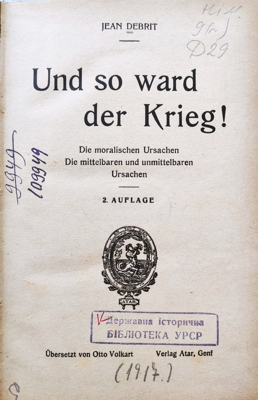 ...Und so war der Krieg! [Текст] . Auflage 2 / J. Debrit ; пер. O. Volkart. - Genf : Verlag Atar, [1917]. - 334 s.