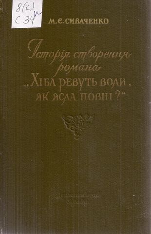 Сиваченко, М. Є. Історія створення роману “Хіба ревуть воли, як ясла повні”. З творчої лабораторії П. Мирного та І. Білика / М. Є. Сиваченко. – Київ : Держлітвидав УРСР, 1957. – 321 с. : 7 л. іл., портр., факс.