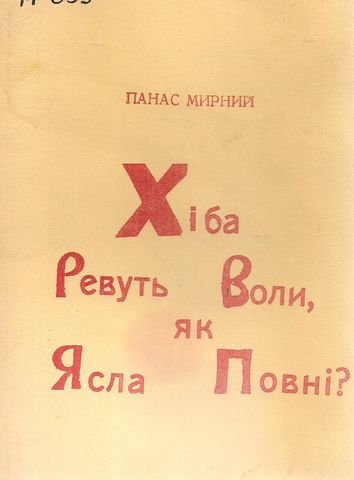 Білик, І. Хіба ревуть воли як ясла повні? : роман з народного життя / І. Білик, П. Мирний. – Нью-Йорк : Говерла, 1955. – 348 с.