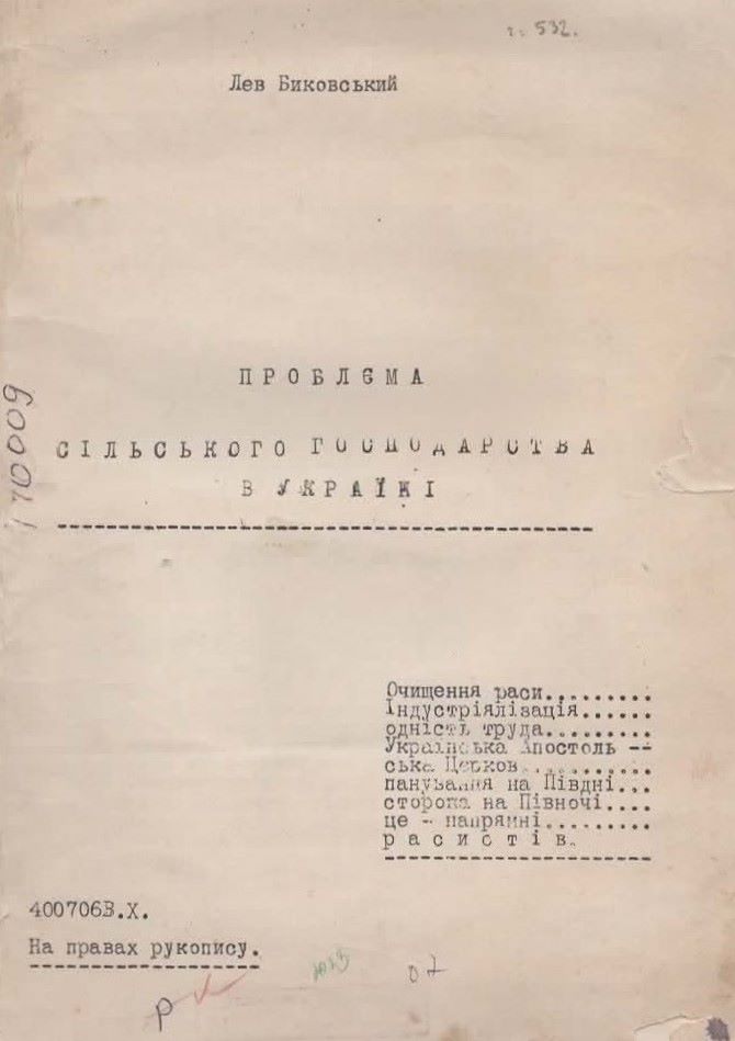 12. Биковський Л. Проблема сільського господарства в Україні : на правах рукопису / Л. Биковський. – 18 с. Шифр: 63/Б606