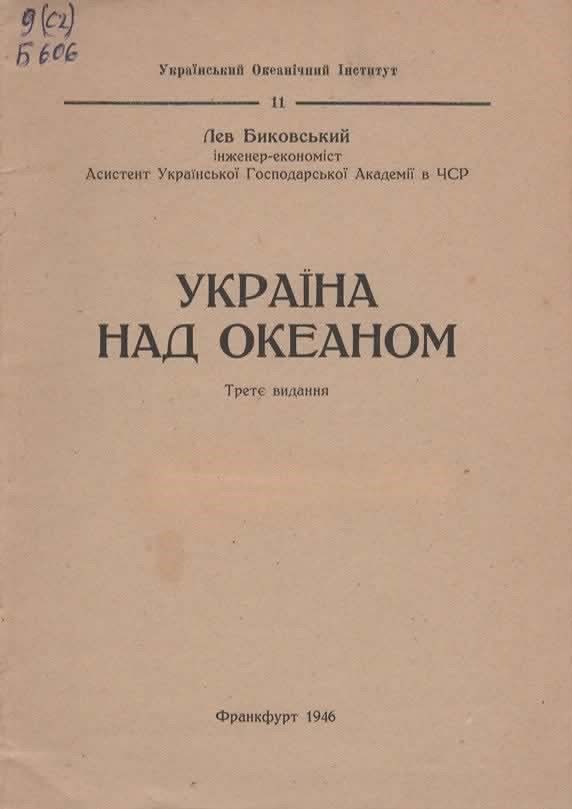 15. Биковський Л. Україна над океаном / Лев Биковський. – 3-є вид. – Франкфурт, 1946. – 23 с. – (Український океанічний ін-т ; 11). Шифр: 9(с2)/Б606