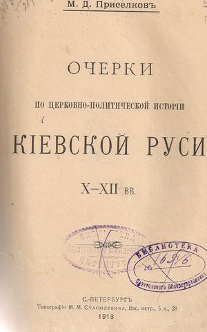 Приселков, М. Д. Очерки по церковно-политической истории Киевской Руси Х–ХІІ вв. / М. Д. Приселков. – Санкт-Петербург : Тип. Стасюлевича, 1913. – С. 132 – 141.