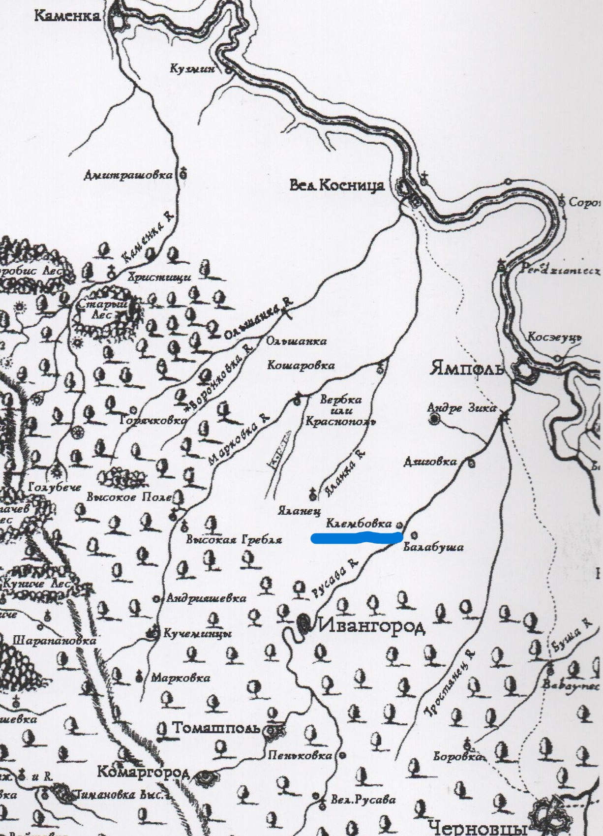 На мапі України ХVІІ ст. французького інженера Гійома Левассера-де-Боплана, який досліджував природу, клімат, історію заселення території, культуру, побут запорізького козацтва і селянства України, відмічено с. Клембовка між Ямполем і Івангородом [Олейников А. А. Атлас карт Украины ХVII ст. французского инженера Гийома Левассера-де-Боплана, 2006. С. 14].