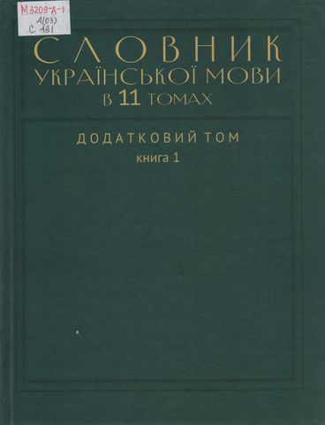 - Словник української мови : в 11 т. Додатковий том : у 2 кн. Кн. 1: А–Л / НАН України, Ін-т укр. мови ; ред. кол.: П. Ю. Гриценко (голова), Л. В. Мовчун (відп. ред.). – Київ : Вид. дім Дмитра Бураго, 2017. – LXVIII, 555 с. Шифр: М3209-д-1/4(03)/С481