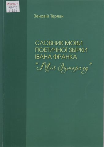 - Терлак З. Словник мови поетичної збірки Івана Франка «Мій Ізмарагд» : у 2 ч. : [довідник] Ч. 1 А–М / З. Терлак ; М-во освіти і науки України, Львівський нац. ун-т ім. І. Франка. Ін-т франкознавства. – Львів : Апріорі, 2016. – 422 с. Шифр: М3194-1/4(03)/Т351